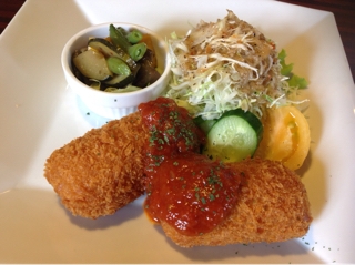 洋食屋さんのカニクリームコロッケは、中までアツアツでケチャップソースが美味しい)^o^(