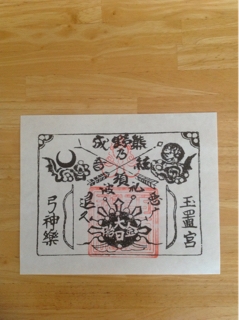 社務所で、御朱印を頂き、魔除けのお札を買いました。