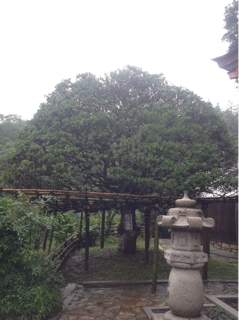 その脇にあるモチの木は、樹齢約400年。