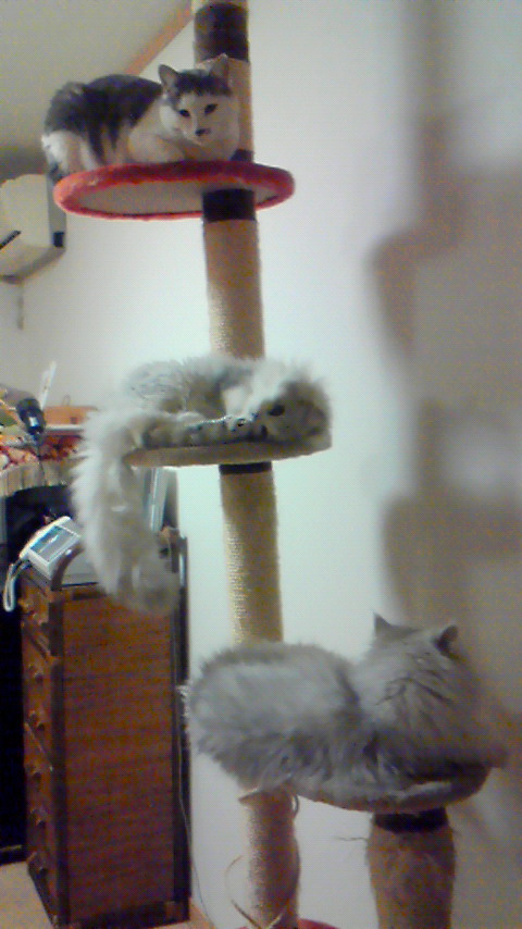 今日は猫タワーで3匹がおそろいでした