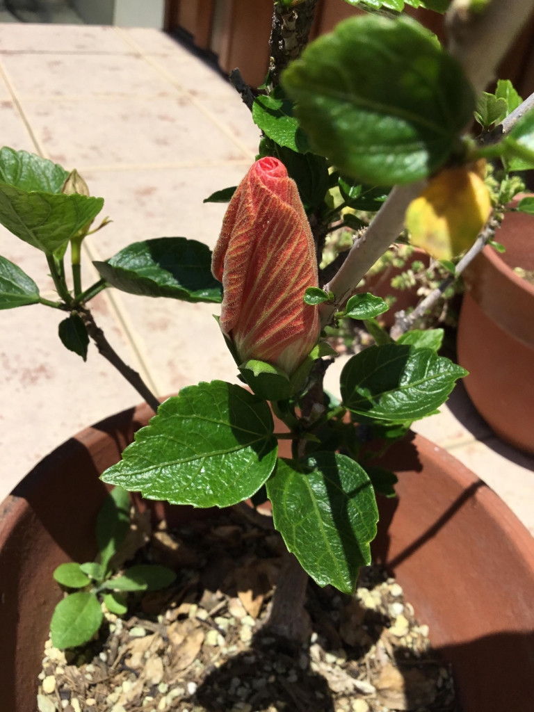 ハイビスカス1号が咲きましたが、色がいつもと違う!