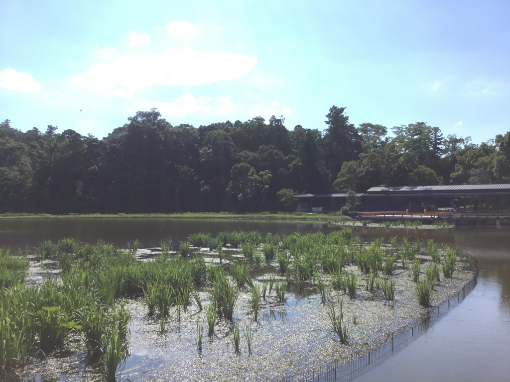 この上の写真は、外宮さんのお隣にある茜神社の勾玉池の風景です。