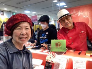 鎧塚さんの赤のコックコートと私の赤の帽子でのツーショットとなりました♬