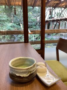 庭と言ってもあまり手入れされていないのですが、そこを見ながらの窓際の席に案内していただけました。