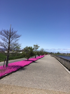 飛行機雲がのんびりした気持ちにさせてくれます。