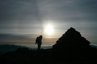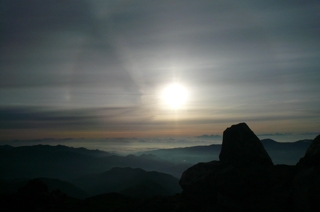 日が登るのを見ながら、大黒岳から富士見岳に移動。