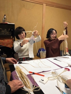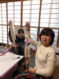 月曜日は、精麻と稲穂を使ってお正月飾りを作りました。