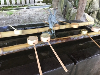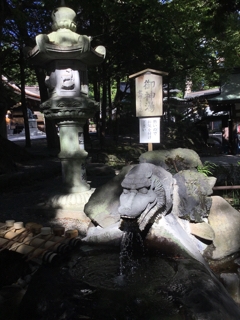 手水舎の隣には、硫黄の匂いがする温泉御神湯がありました。