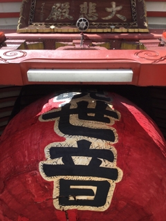 神殿入口の大きい提灯を潜ります。